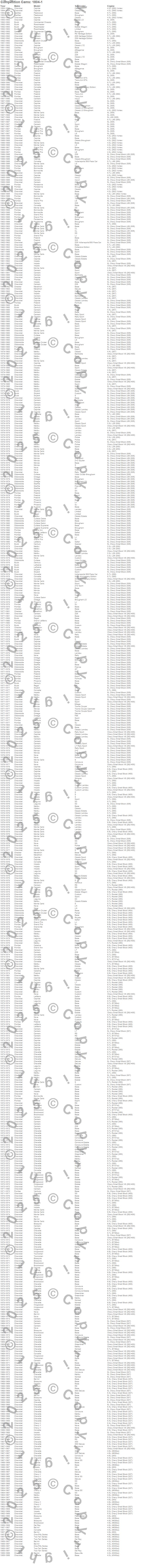 Bel Air, Biscayne, Bonneville, Brookwood, Brougham, Camaro, Caprice, Catalina, Century, Chevelle, Chevy II, Commercial Chassis, Corvette, Custom Cruiser, Cutlass, Cutlass Calais, Cutlass Cruiser, Cutlass Salon, Cutlass Supreme, Del Ray