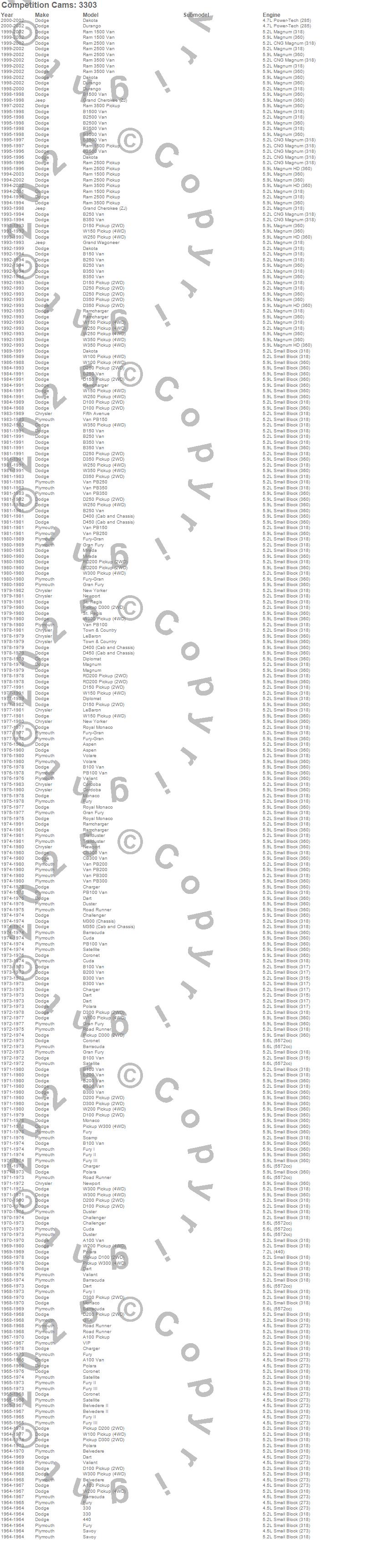 330, 440, 880, A100 Van, Aspen, B100 Van, B150 Van, B1500 Van, B200 Van, B250 Van, B2500 Van, B300 Van, B350 Van, B3500 Van, Barracuda, Belvedere, Belvedere II, CB300 Van, Challenger, Charger