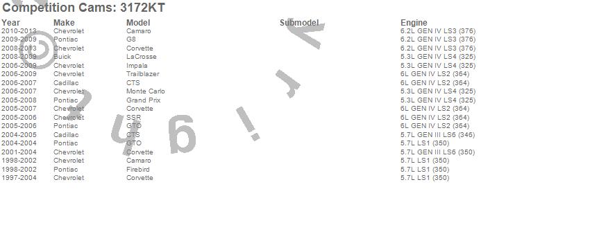 Below is an abbreviated list of applications for the LS Adjustable Timing Set.
