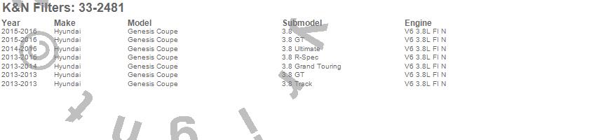 Below is an abbreviated list of applications for the Air Filter.