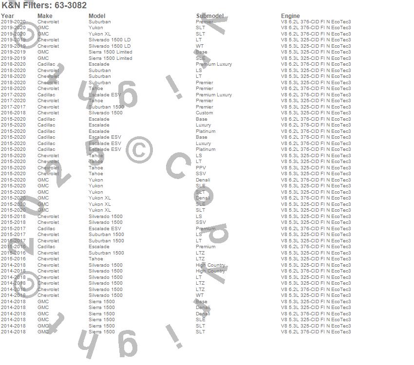 Escalade, Escalade ESV, Sierra 1500, Sierra 1500 Limited, Silverado 1500, Silverado 1500 LD, Suburban, Suburban 1500, Tahoe, Yukon, Yukon XL, Cadillac, Chevrolet, GMC, 2020, 2019, 2018, 2017, 2016, 2015
