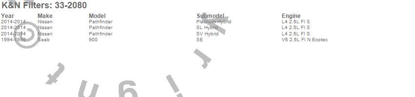K&N Filters - Air Filter P/N 33-2080 Features: