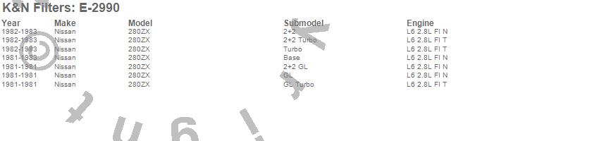 Below is an abbreviated list of applications for the Air Filter.