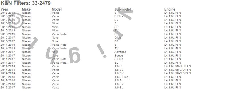 Below is an abbreviated list of applications for the Air Filter.