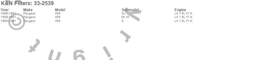 Below is an abbreviated list of applications for the Air Filter.