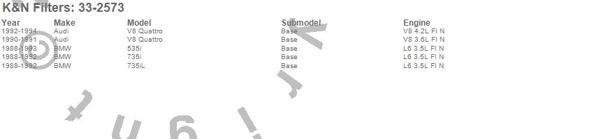 Below is an abbreviated list of applications for the Air Filter.
