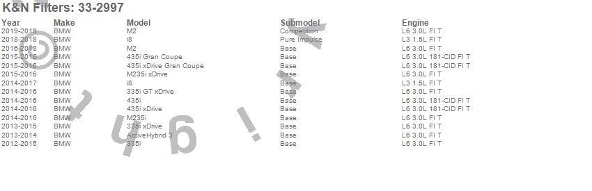 Below is an abbreviated list of applications for the Air Filter.