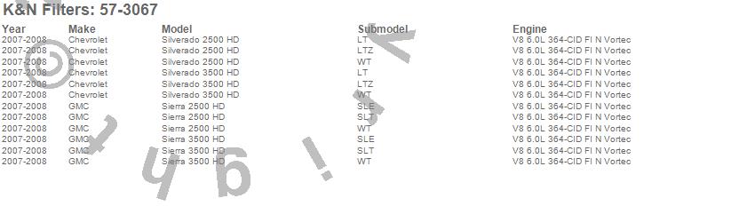 Below is an abbreviated list of applications for the Filtercharger Injection Performance Kit.