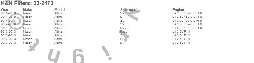Below is an abbreviated list of applications for the Air Filter.