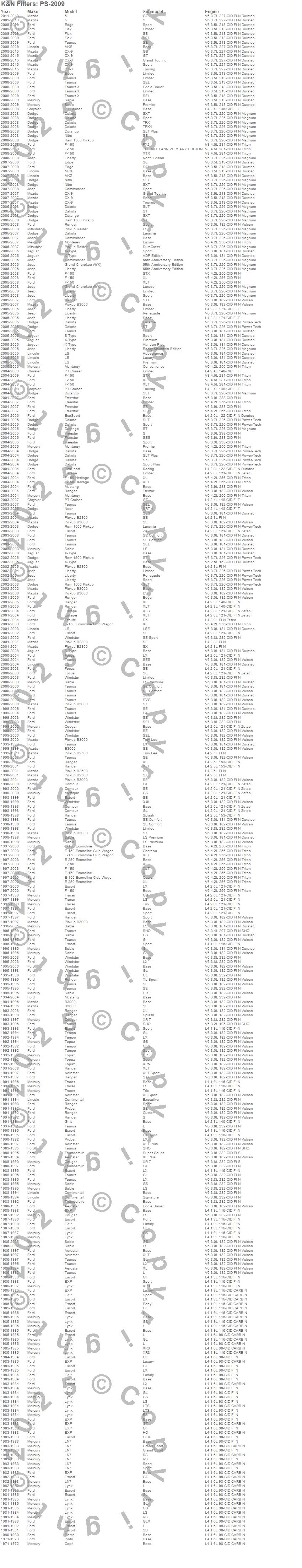 6, Aerostar, B2300, B2500, B3000, Capri, Commander, Continental, Contour, Cougar, CX-9, Dakota, Durango, E-150 Econoline, E-150 Econoline Club Wagon, E-250 Econoline, EcoSport, Edge, Escape, Escort