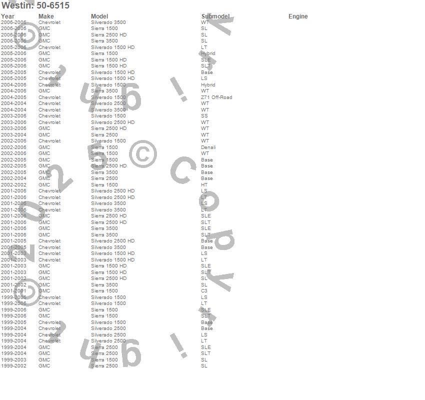 Below is an abbreviated list of applications for the Westin Tailgate Mat.