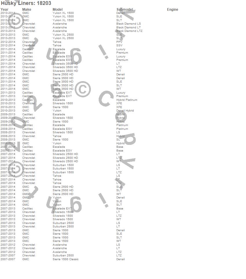 Avalanche, Escalade, Escalade ESV, Escalade EXT, Sierra 1500, Sierra 2500 HD, Sierra 3500 HD, Silverado 1500, Silverado 2500 HD, Silverado 3500 HD, Suburban 1500, Suburban 2500, Tahoe, Yukon, Yukon XL 1500, Yukon XL 2500, Cadillac, Chevrolet, GMC, 2014