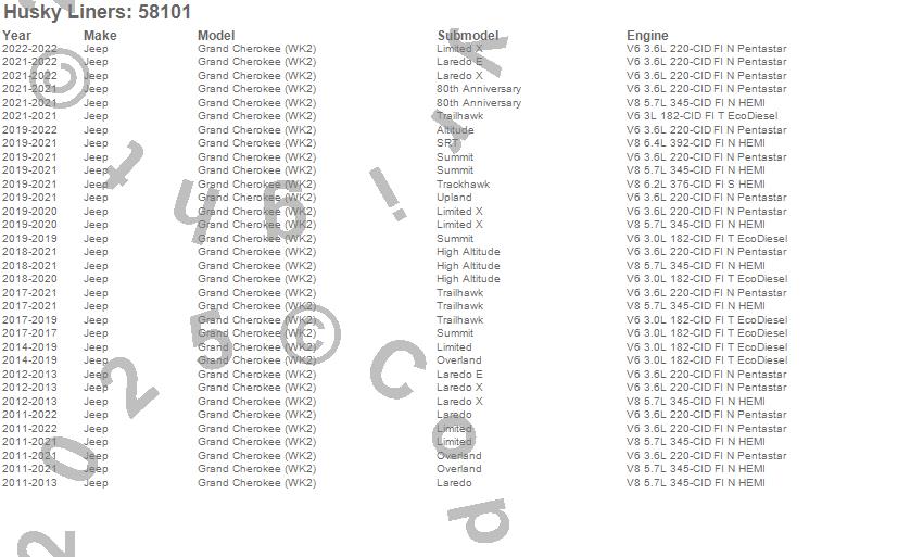 Grand Cherokee (WK2), Jeep, 2022, 2021, 2020, 2019, 2018, 2017, 2016, 2015, 2014, 2013, 2012, 2011
