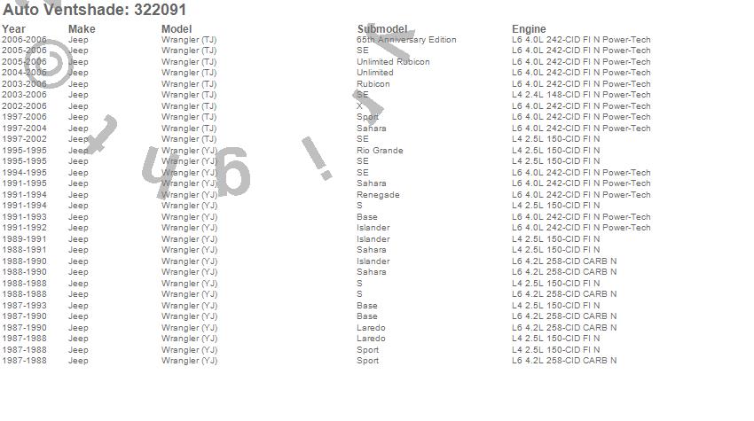 Wrangler (TJ), Wrangler (YJ), Jeep, 2006, 2005, 2004, 2003, 2002, 2001, 2000, 1999, 1998, 1997, 1995, 1994, 1993, 1992, 1991, 1990, 1989