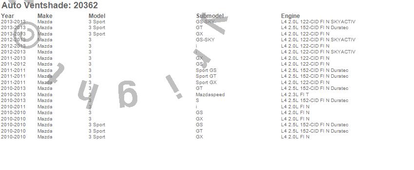 Below is an abbreviated list of applications for the Carflector Stone/Bug Deflector.