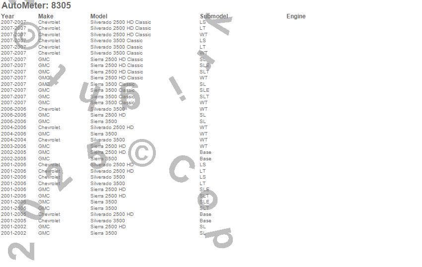Below is an abbreviated list of applications for the Chevy Factory Match Mechanical Boost Gauge.