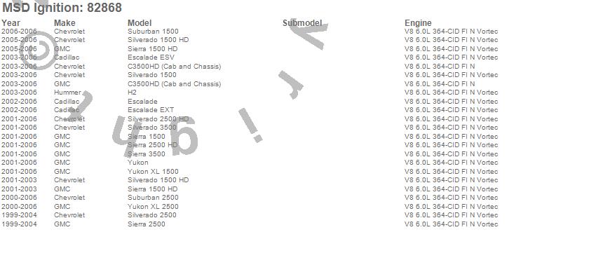 C3500HD, Escalade, Escalade ESV, Escalade EXT, H2, Sierra 1500, Sierra 1500 HD, Sierra 2500, Sierra 2500 HD, Sierra 3500, Silverado 1500, Silverado 1500 HD, Silverado 2500, Silverado 2500 HD, Silverado 3500, Suburban 1500, Suburban 2500, Yukon, Yukon XL 1500, Yukon XL 2500
