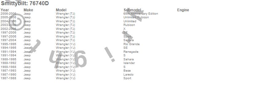 Wrangler (TJ), Wrangler (YJ), Jeep, 2006, 2005, 2004, 2003, 2002, 2001, 2000, 1999, 1998, 1997, 1995, 1994, 1993, 1992, 1991, 1990, 1989