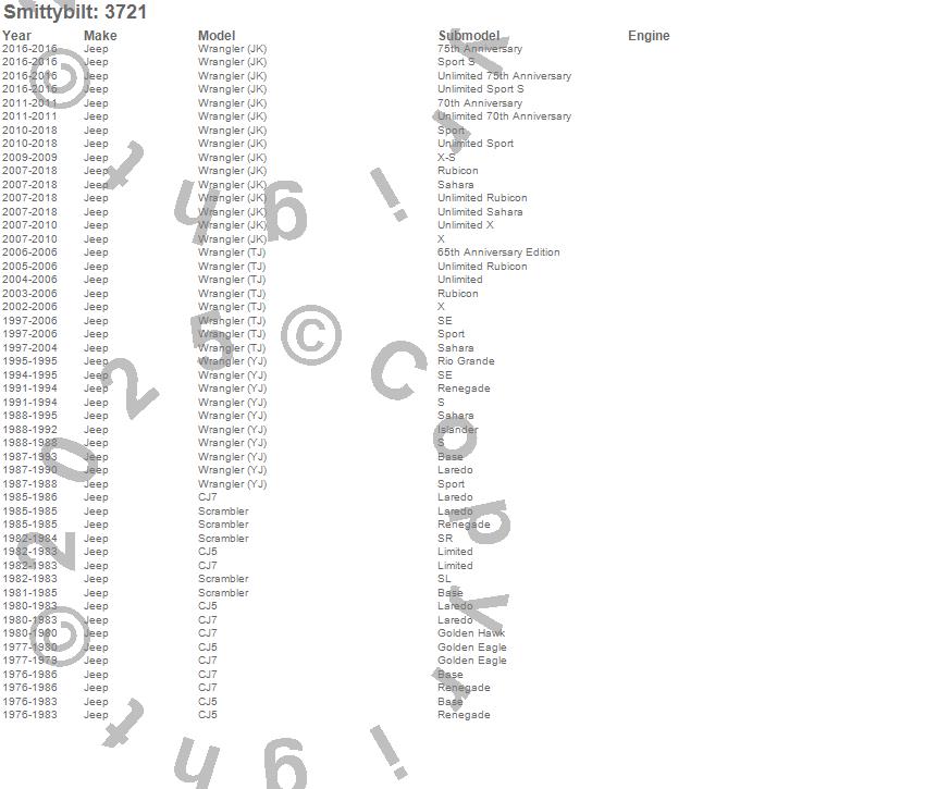 CJ5, CJ7, Scrambler, Wrangler (JK), Wrangler (TJ), Wrangler (YJ), Jeep, 2018, 2017, 2016, 2015, 2014, 2013, 2012, 2011, 2010, 2009, 2008, 2007, 2006