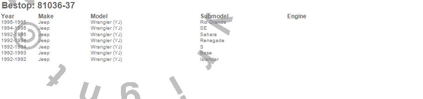 Below is an abbreviated list of applications for the All Weather Trail Cover For Jeep.