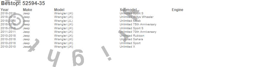 Below is an abbreviated list of applications for the Header Extended Safari Cable Style Bikini Top.