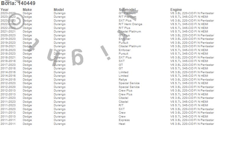 Durango, Dodge, 2023, 2022, 2021, 2020, 2019, 2018, 2017, 2016, 2015, 2014, 2013, 2012, 2011