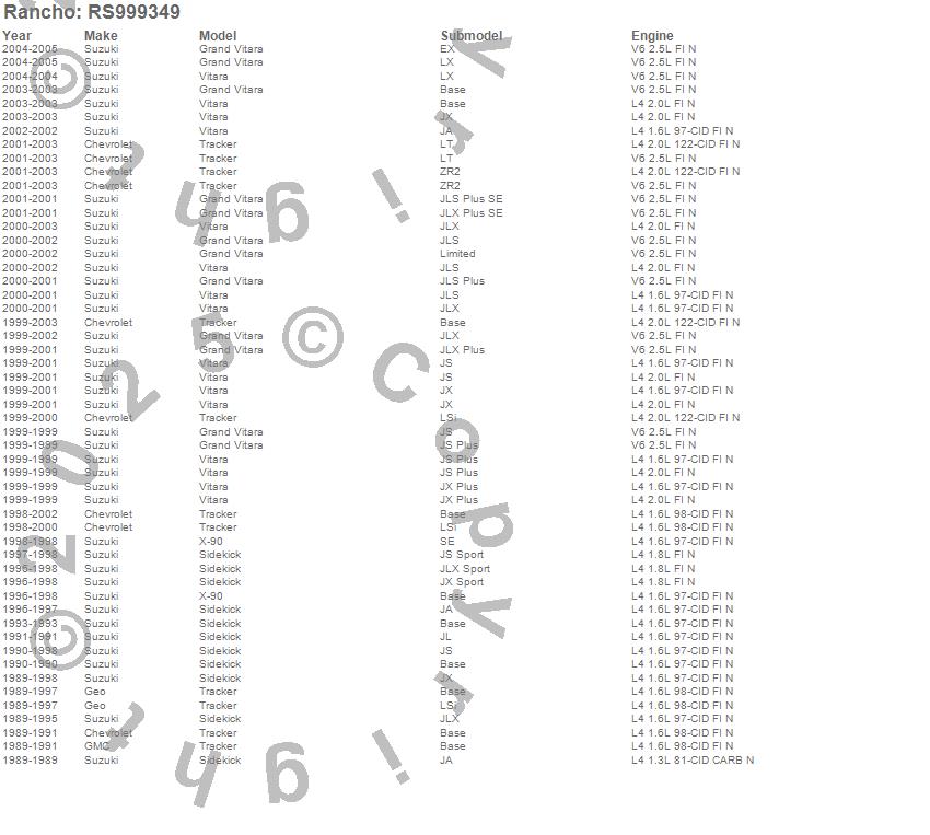 Below is an abbreviated list of applications for the RS9000XL Series Suspension Strut Assembly.