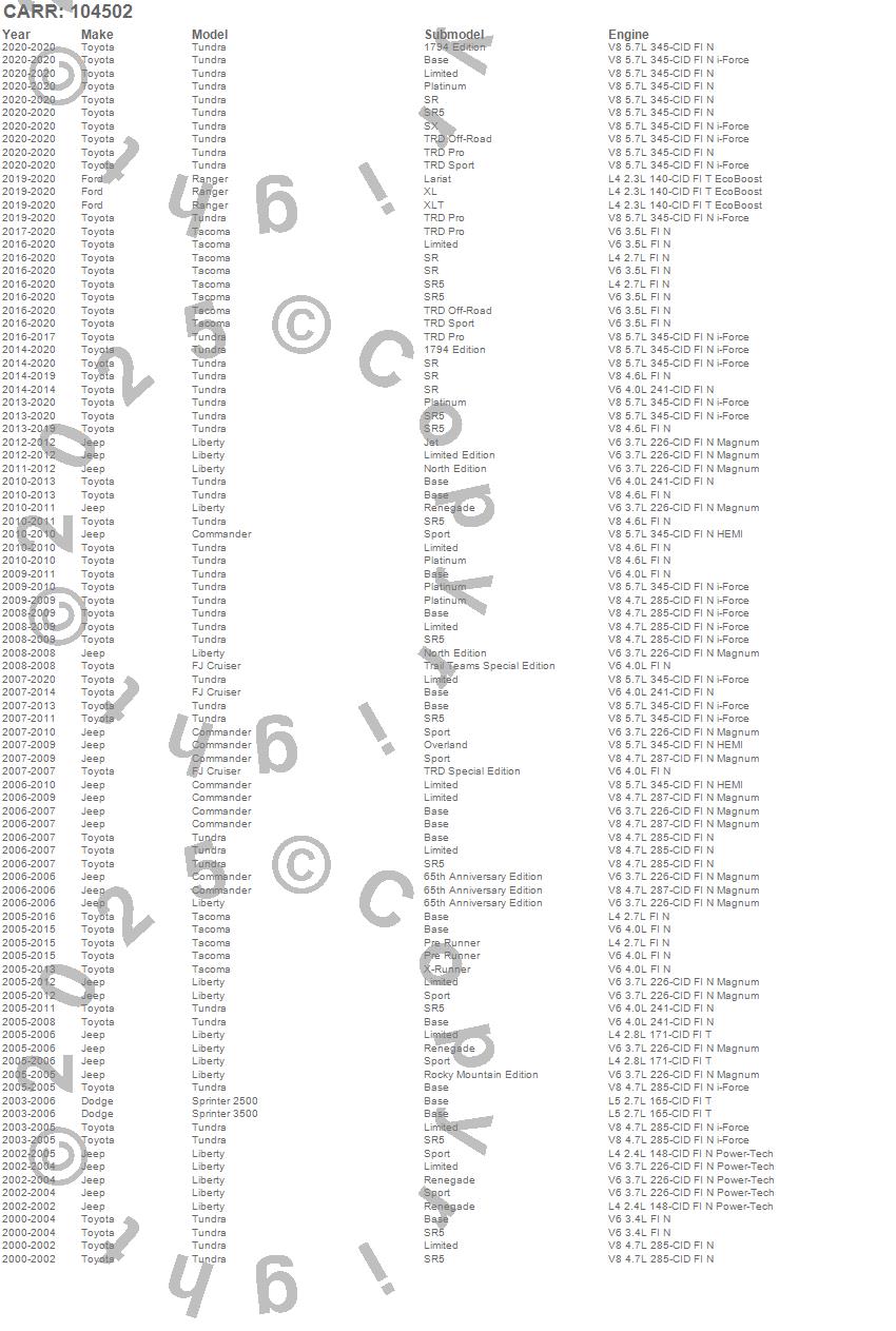 Commander, FJ Cruiser, Liberty, Ranger, Sprinter 2500, Sprinter 3500, Tacoma, Tundra, Dodge, Ford, Jeep, Toyota, 2020, 2019, 2018, 2017, 2016, 2015, 2014, 2013