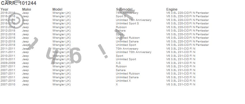 Wrangler (JK), Jeep, 2018, 2017, 2016, 2015, 2014, 2013, 2012, 2011, 2010, 2009, 2008, 2007