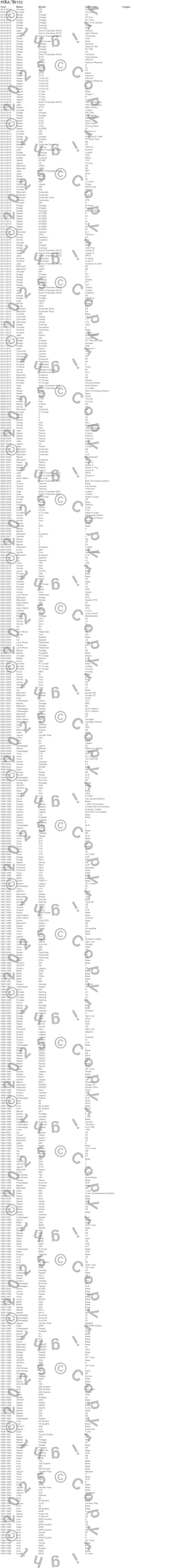 100, 100 Quattro, 164, 200, 200 Quattro, 200SX, 240SX, 3, 3 Sport, 300, 3000GT, 300ZX, 318i, 318is, 318ti, 320i, 323, 323I, 323is, 325i