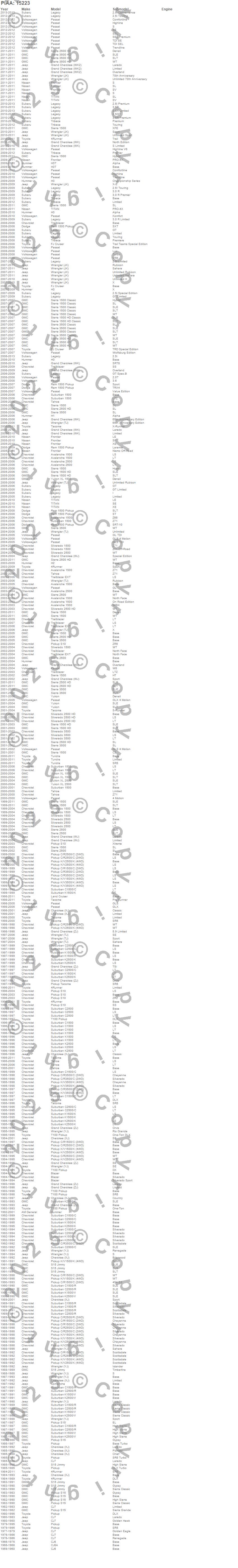 4Runner, Avalanche 1500, Avalanche 2500, Blazer, C1500 Pickup, C1500 Suburban, C2500 Pickup, C2500 Suburban, C3500 Pickup, Cherokee (XJ), CJ6, CJ6A, CJ7, Comanche, FJ Cruiser, Frontier, Grand Cherokee (WJ), Grand Cherokee (WK), Grand Cherokee (WK2), Grand Cherokee (ZJ)