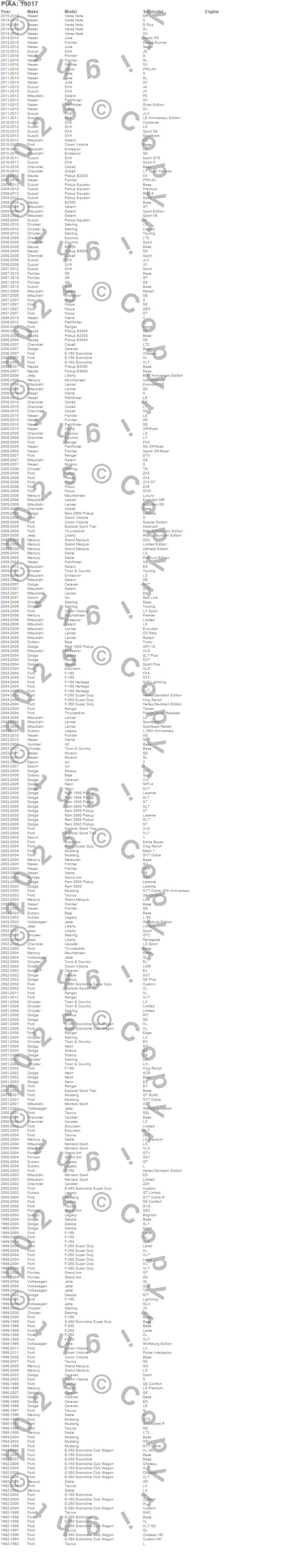 B2300, B3000, B4000, Baja, Caravan, Cavalier, Cobalt, Crown Victoria, Dakota, E-150 Econoline, E-150 Econoline Club Wagon, E-250 Econoline, E-350 Econoline, E-350 Econoline Club Wagon, E-450 Econoline Super Duty, E-550 Econoline Super Duty, Endeavor, Equator, Equinox, Excursion