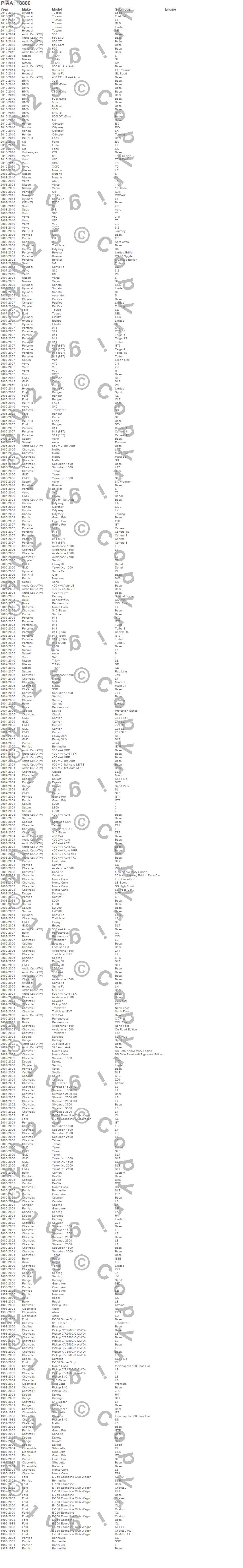 Below is an abbreviated list of applications for the 880 Xtreme White Plus Replacement Bulb.