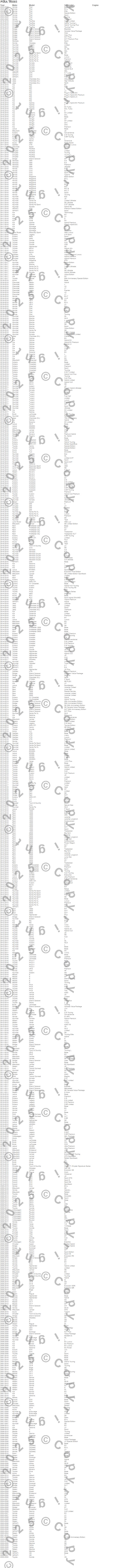 1500, 200, 2500, 3500, 5, Accent, Accord, Allure, Altima, Aspen, Avalon, Azera, Cadenza, Camry, Celica, Cherokee (KL), Civic, Corolla, CR-Z, Crosstrek