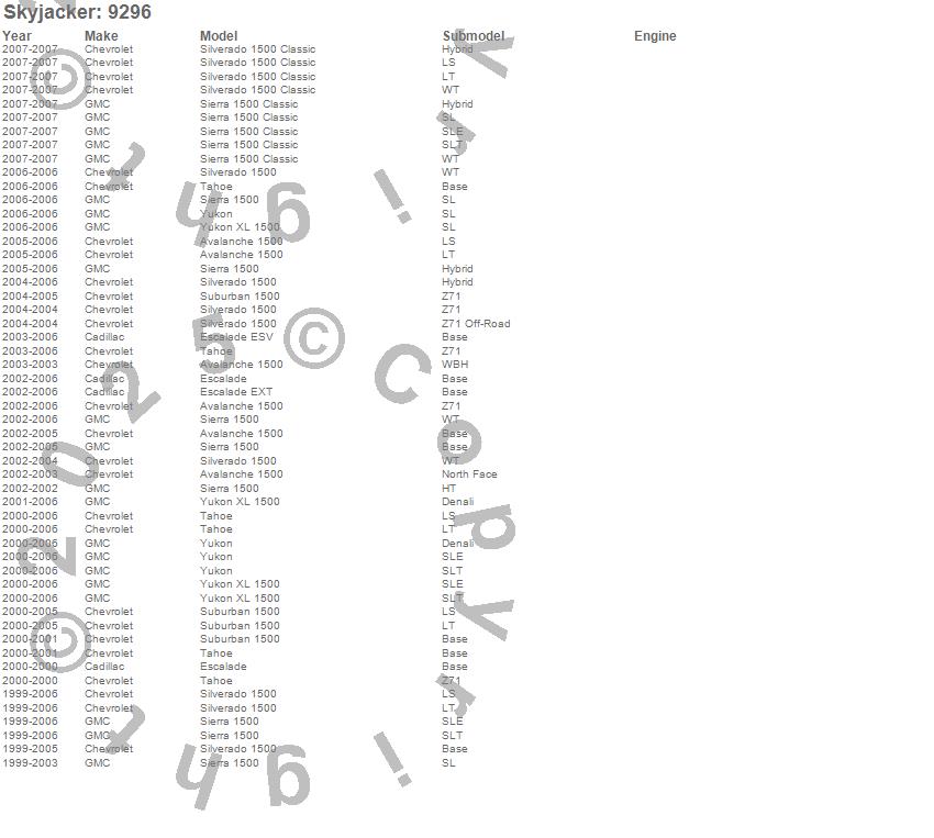 Avalanche 1500, Escalade, Escalade ESV, Escalade EXT, Sierra 1500, Sierra 1500 Classic, Silverado 1500, Silverado 1500 Classic, Suburban 1500, Tahoe, Yukon, Yukon XL 1500, Cadillac, Chevrolet, GMC, 2007, 2006, 2005, 2004, 2003