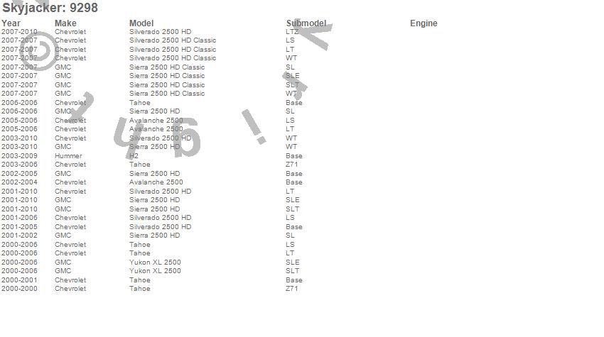 Avalanche 2500, H2, Sierra 2500 HD, Sierra 2500 HD Classic, Silverado 2500 HD, Silverado 2500 HD Classic, Tahoe, Yukon XL 2500, Chevrolet, GMC, Hummer, 2010, 2009, 2008, 2007, 2006, 2005, 2004, 2003, 2002