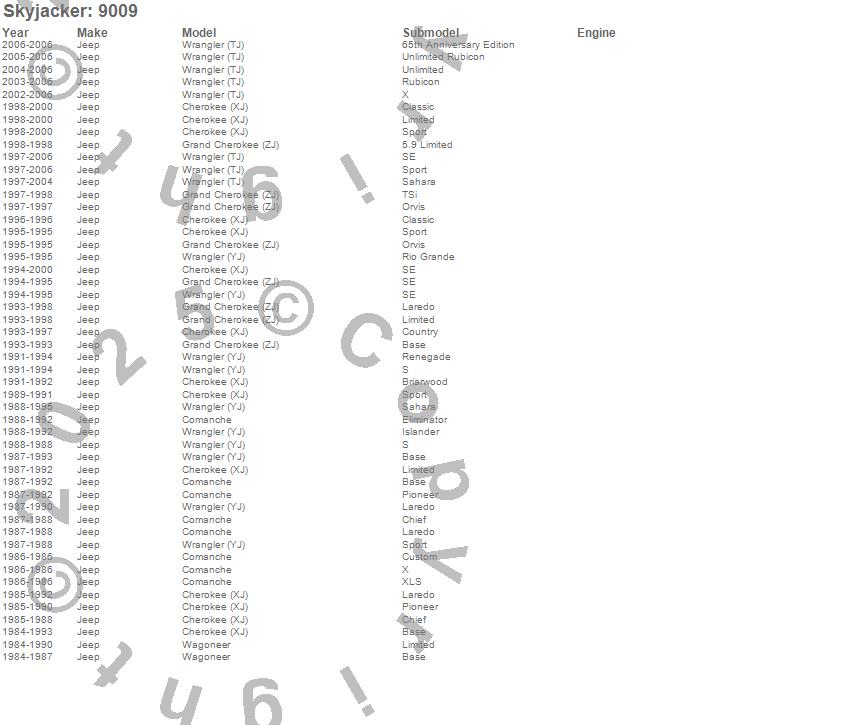 Cherokee (XJ), Comanche, Grand Cherokee (ZJ), Wagoneer, Wrangler (TJ), Wrangler (YJ), Jeep, 2006, 2005, 2004, 2003, 2002, 2001, 2000, 1999, 1998, 1997, 1996, 1995, 1994