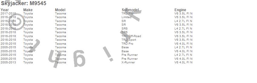 Tacoma, Toyota, 2018, 2017, 2016, 2015, 2014, 2013, 2012, 2011, 2010, 2009, 2008, 2007, 2006, 2005