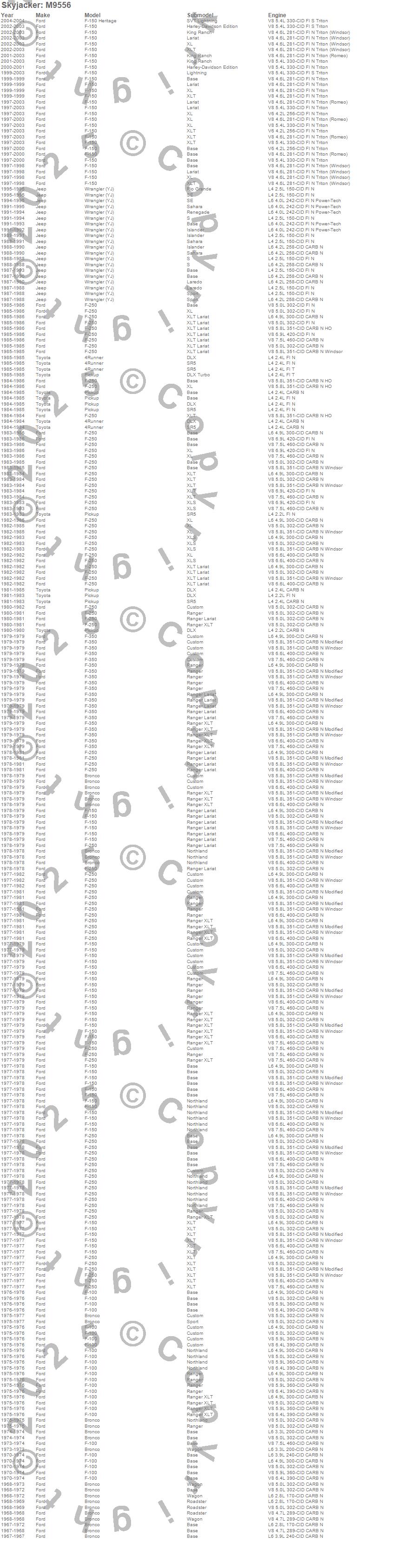 4Runner, Bronco, F-100, F-150, F-150 Heritage, F-250, F-350, Pickup, Wrangler (YJ), Ford, Jeep, Toyota, 2004, 2003, 2002, 2001, 2000, 1999, 1998, 1997