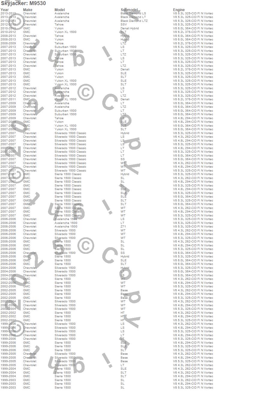 Avalanche, Avalanche 1500, Sierra 1500, Sierra 1500 Classic, Silverado 1500, Silverado 1500 Classic, Suburban 1500, Tahoe, Yukon, Yukon XL 1500, Chevrolet, GMC, 2013, 2012, 2011, 2010, 2009, 2008, 2007, 2006