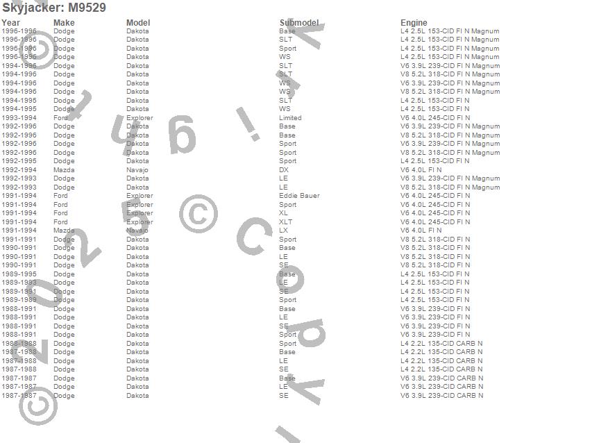 Dakota, Explorer, Navajo, Dodge, Ford, Mazda, 1996, 1995, 1994, 1993, 1992, 1991, 1990, 1989, 1988, 1987