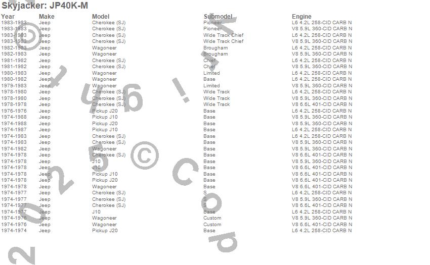 Cherokee (SJ), J10, J20, Wagoneer, Jeep, 1988, 1987, 1986, 1985, 1984, 1983, 1982, 1981, 1980, 1979, 1978, 1977, 1976, 1975, 1974