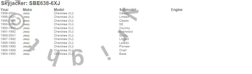 Cherokee (XJ), Jeep, 2001, 2000, 1999, 1998, 1997, 1996, 1995, 1994, 1993, 1992, 1991, 1990, 1989, 1988, 1987, 1986, 1985, 1984