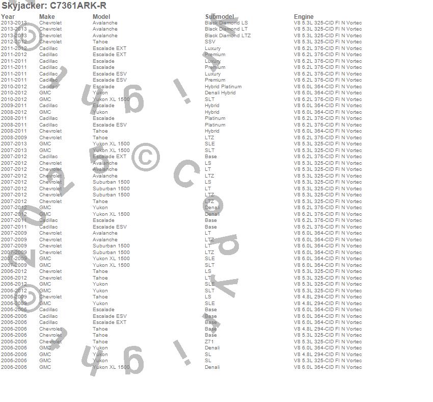 Avalanche, Escalade, Escalade ESV, Escalade EXT, Suburban 1500, Tahoe, Yukon, Yukon XL 1500, Cadillac, Chevrolet, GMC, 2013, 2012, 2011, 2010, 2009, 2008, 2007, 2006
