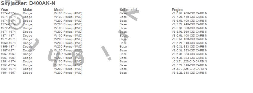 W100 Pickup, W200 Pickup, W300 Series, Dodge, 1974, 1973, 1972, 1971, 1970, 1969, 1968, 1967, 1966, 1965, 1964, 1963, 1962, 1961
