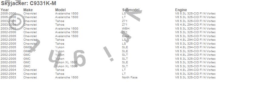 Avalanche 1500, Tahoe, Yukon, Yukon XL 1500, Chevrolet, GMC, 2006, 2005, 2004, 2003, 2002