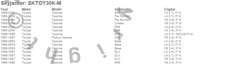 Skyjacker - Suspension Lift Kit w/Shock P/N SKTOY30K-M Features: