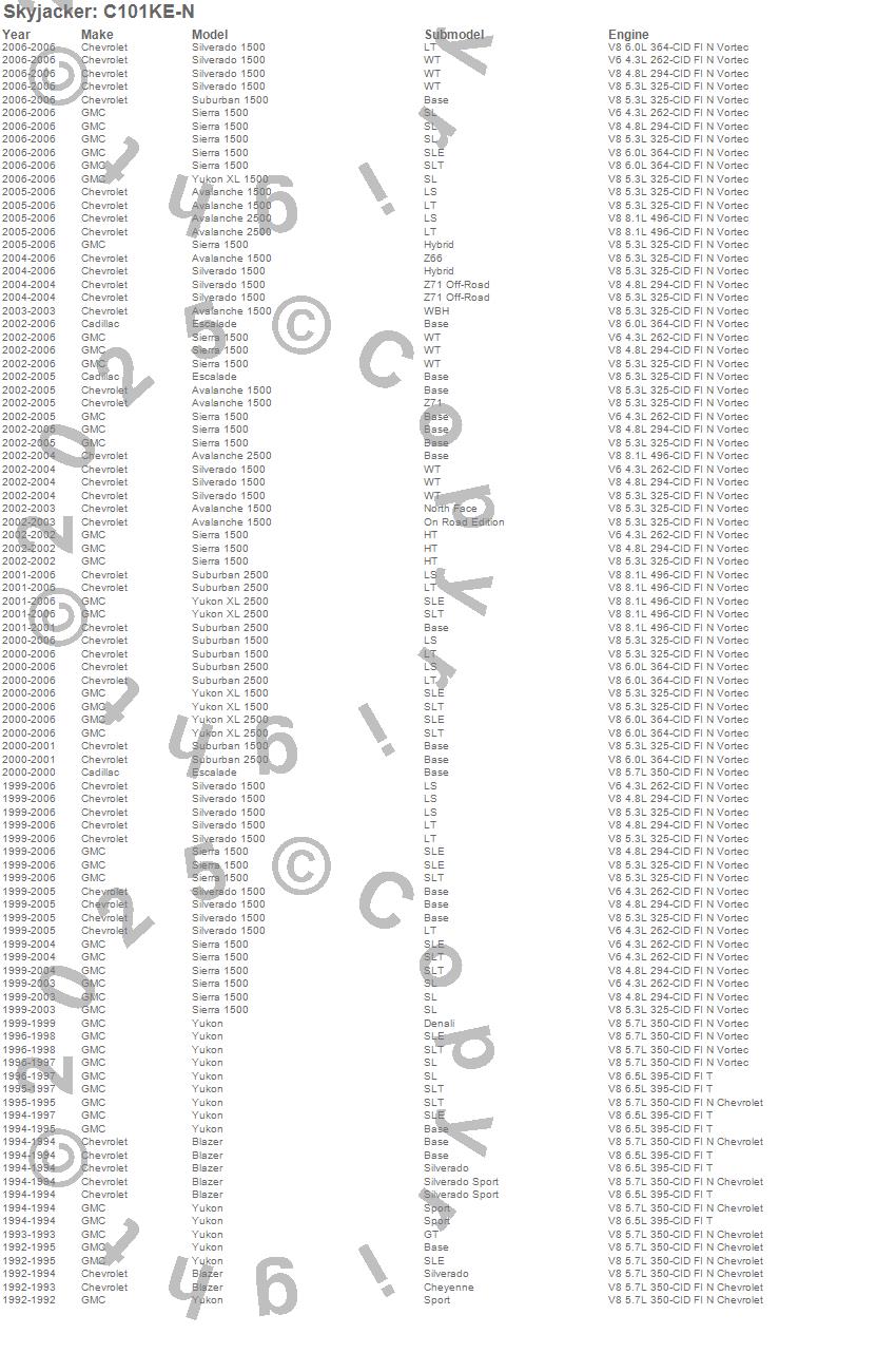 Avalanche 1500, Avalanche 2500, Blazer, Escalade, Sierra 1500, Silverado 1500, Suburban 1500, Suburban 2500, Yukon, Yukon XL 1500, Yukon XL 2500, Cadillac, Chevrolet, GMC, 2006, 2005, 2004, 2003, 2002, 2001