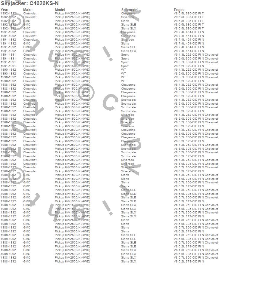 Below is an abbreviated list of applications for the Suspension Lift Kit w/Shock.
