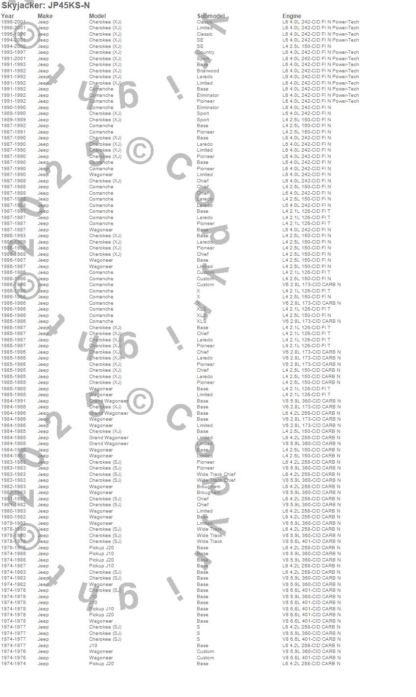 Cherokee (SJ), Cherokee (XJ), Comanche, Grand Wagoneer, J10, J20, Wagoneer, Jeep, 2001, 2000, 1999, 1998, 1997, 1996, 1995, 1994, 1993, 1992, 1991, 1990
